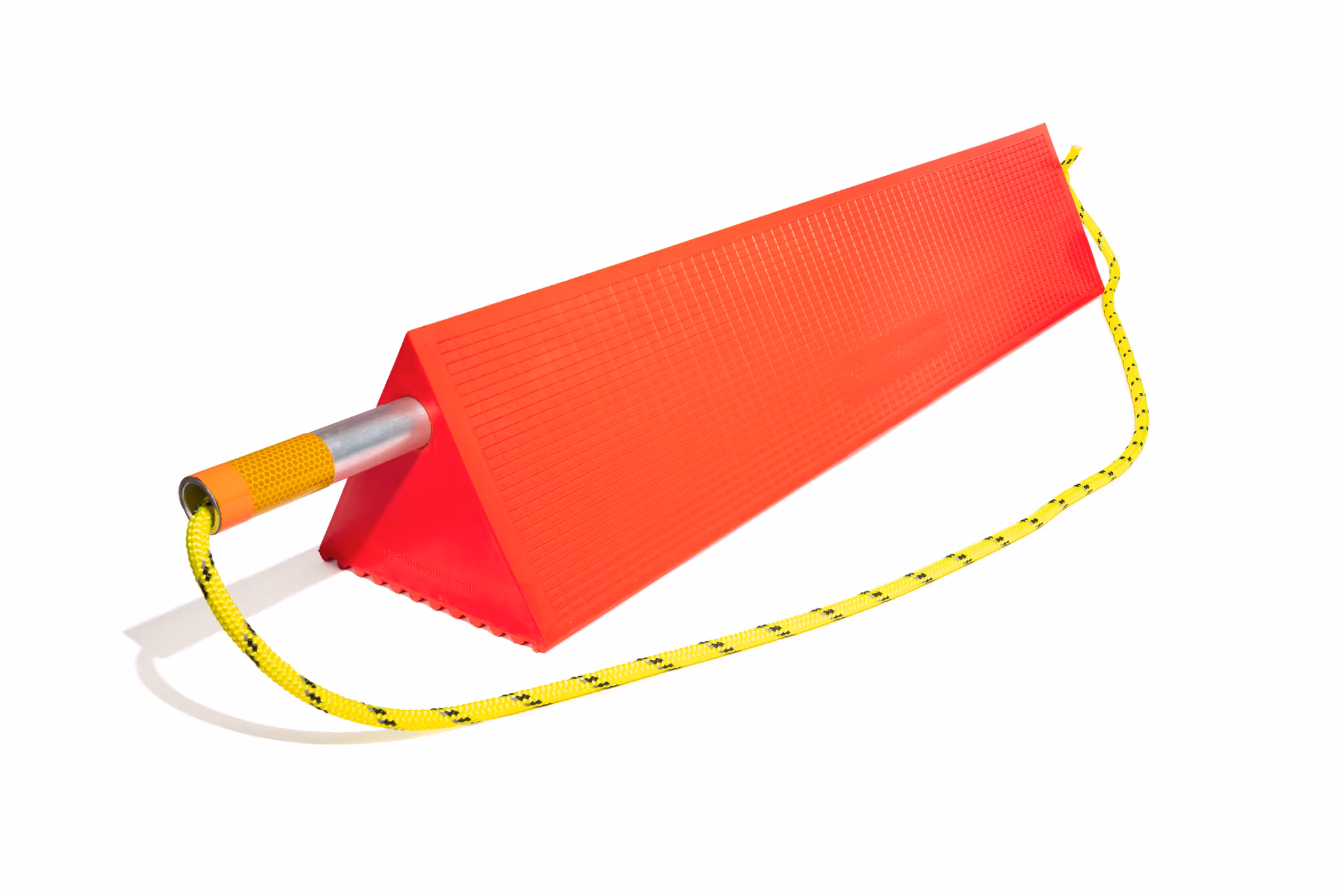 Mark 10 Chock has an innovative aluminium handle, which generates a lever and thus an increased user-friendliness. To increase the product's user-friendliness even further a rope runs through the aluminium handle. A reflex is placed on the outermost part of the handle in order to further visualize the block if it would be placed behind a wheel. Thanks to the shape of the block in combination with the handle, it is easy to place at the right place. The material is 100% recyclable.
