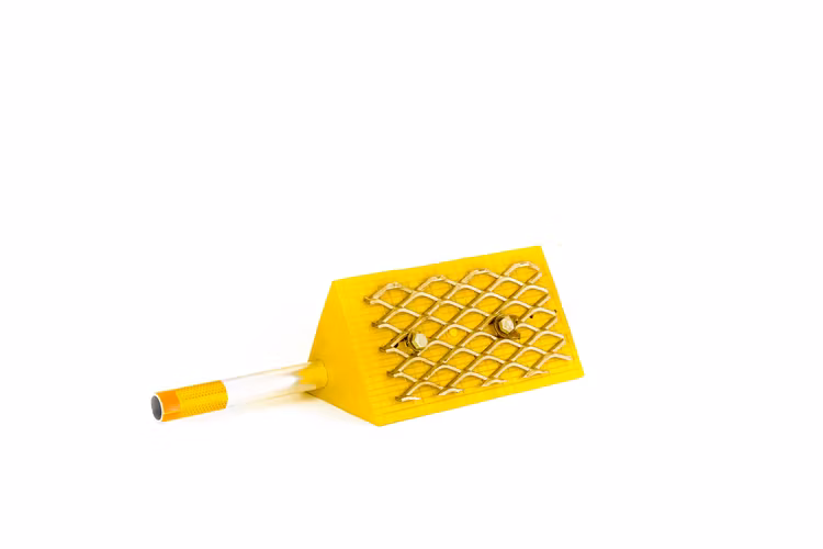 This product is extra equipped with a steel grille to generate a constant grip even in the case of snow and ice. The grille in combination with the slope of the block together with the wheel pressure generates a constant grip.  Wide Body Ice Chock has an innovative aluminium handle, which generates a lever and thus an increased user-friendliness. A reflex is placed on the outermost part of the handle in order to further visualize the block if it would be placed behind a wheel. Thanks to the shape of the block in combination with the handle, it is easy to place at the right place. The material is 100% recyclable.