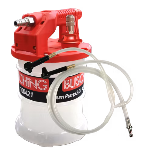 With this brake bleeder, the brake fluid is extracted at the wheel brake cylinders. The pump generates connected by the integrated Venturi system a powerful vacuum with which the brake system is bled. Due to the universal rubber nipple, the device is also suitable for ABS.