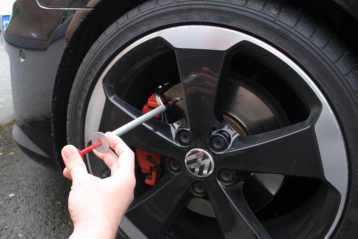The brake disc gauge is a special measuring tool to measure the wear of the brake disc. The brake disc thickness can be determined without dismantling the wheel.