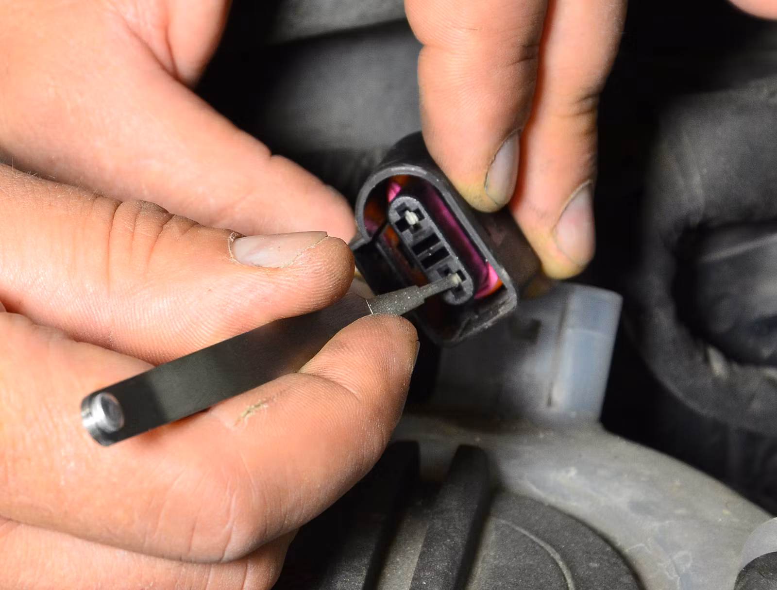 For removing corrosion in the connector housing without damaging the sensitive contacts. The tweezer shape allows plugs as well as connectors on flat (spade) pin terminals to be cleaned. In addition, the legs of the tweezers are adjustable (pivoting function) and thus enable even more versatile and flexible use. Improves the conductivity of electrical connections for trouble-free diagnosis on the object.